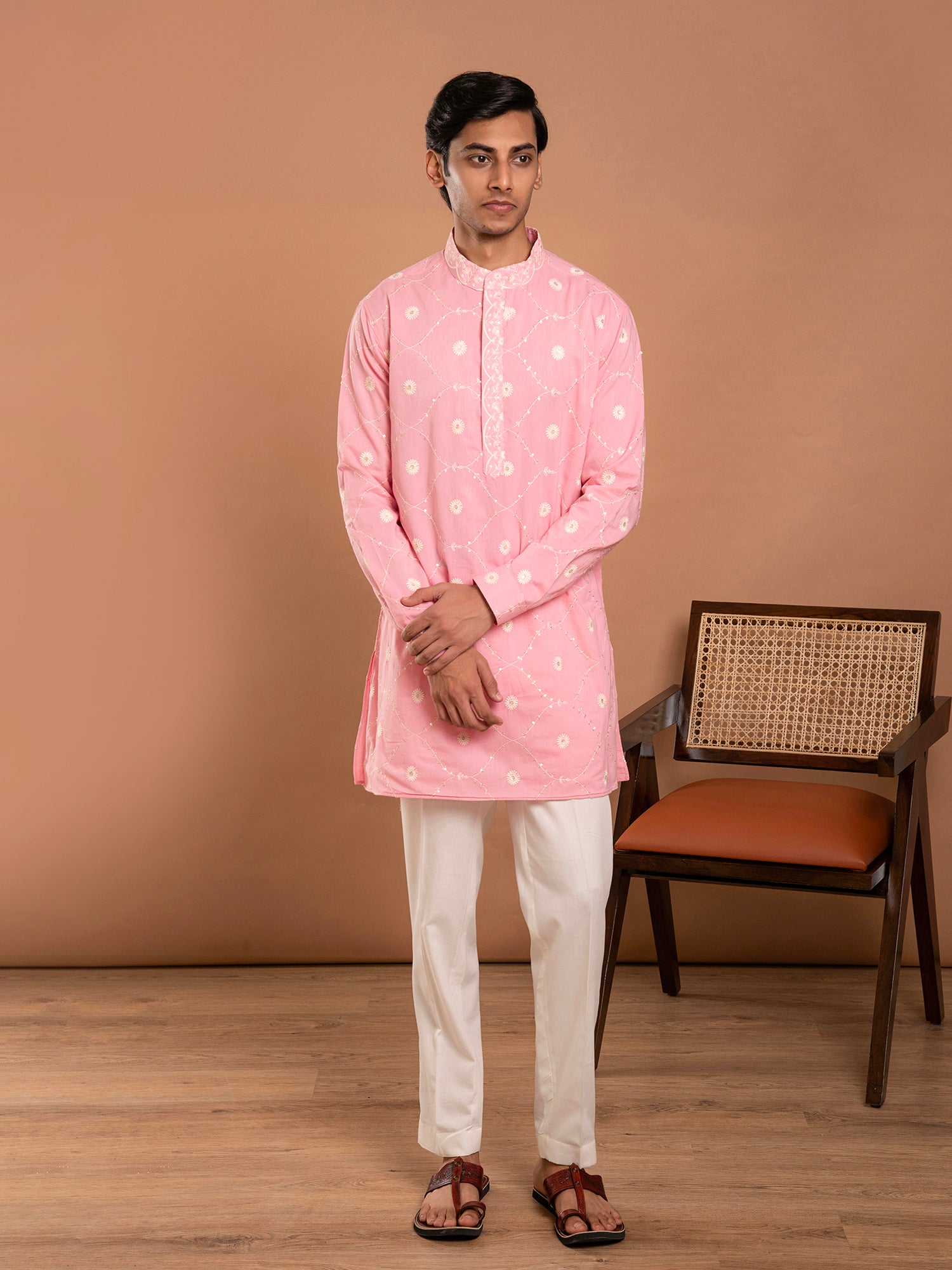 The Mulmul "Kush Pink Embroidered Kurta-Pant Set "combines a traditional craftsmanship with modern elegance, providing wearers with a comfortable and fashionable outfit option enriched with intricate embroidery details. It's suitable for various occasions, festive occasions, or semi-formal gatherings, allowing the wearer to make a stylish statement with elegance and grace.