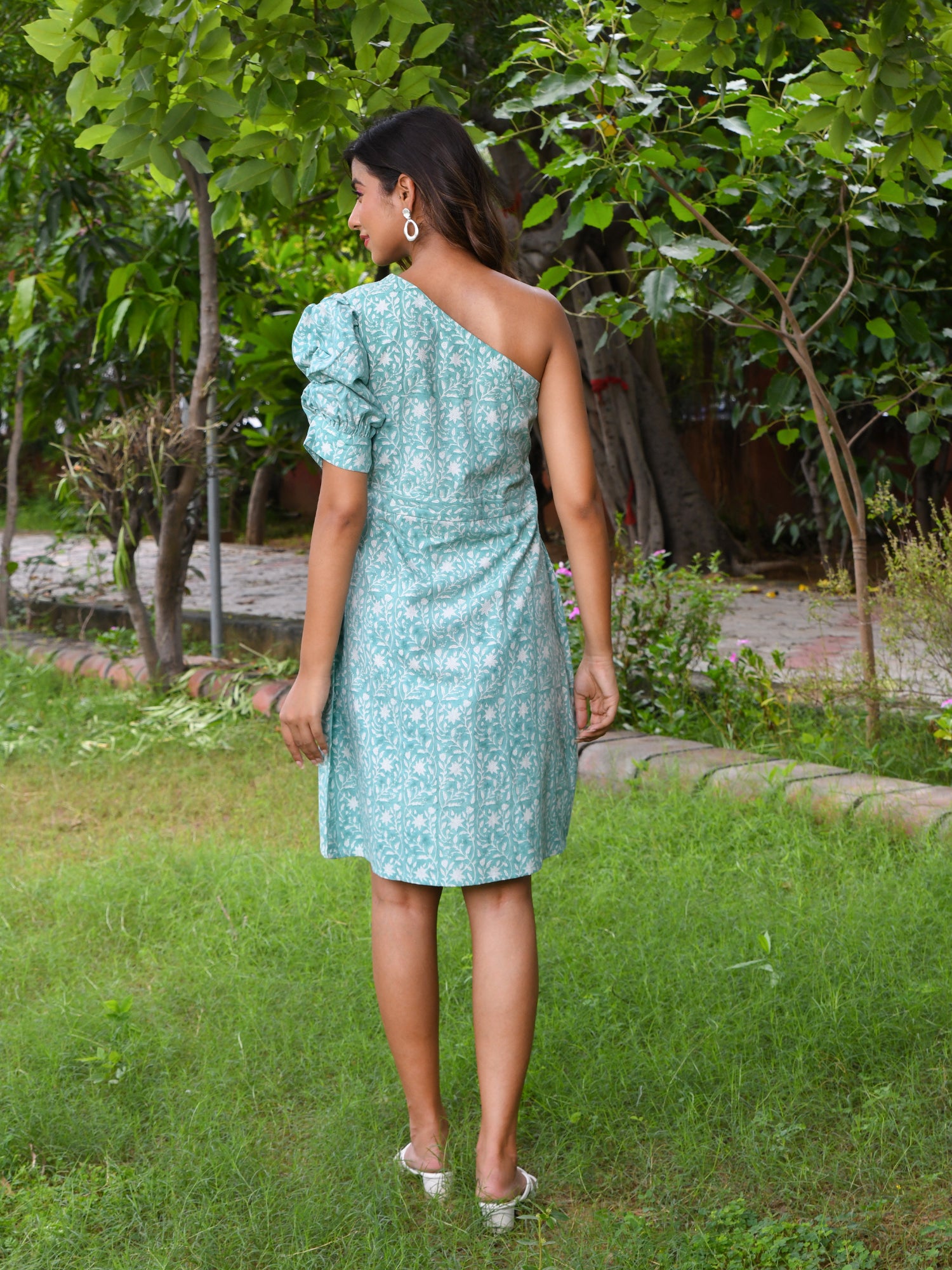Embrace the essence of summer with our CLAIRE BLOCK PRINTED ONE-SHOULDER DRESS from the Sunshine Soiree collection. This dress's length and design perfectly captures the essence of youthfulness and lends a playful flair to your ensemble.