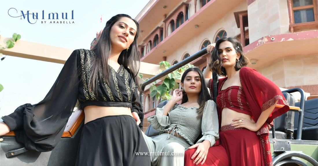 It is indeed the season of co-ords as bandeau blouses meet wide-leg shararas and crop tops compliment flared skirts in a harmonious combination of fashion and festive fervour. Mulmul plans to add new indo-western styles on the website regularly, covering a wide array of categories such as western tops and shirts, indo-western outfits, co-ordinated sets and other western dresses and ensembles that let you swing seamlessly through celebrations.