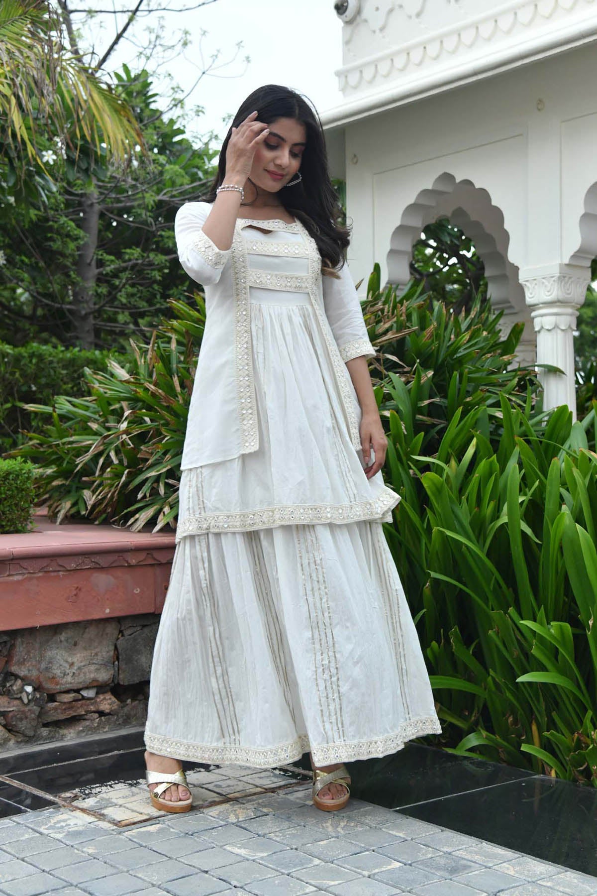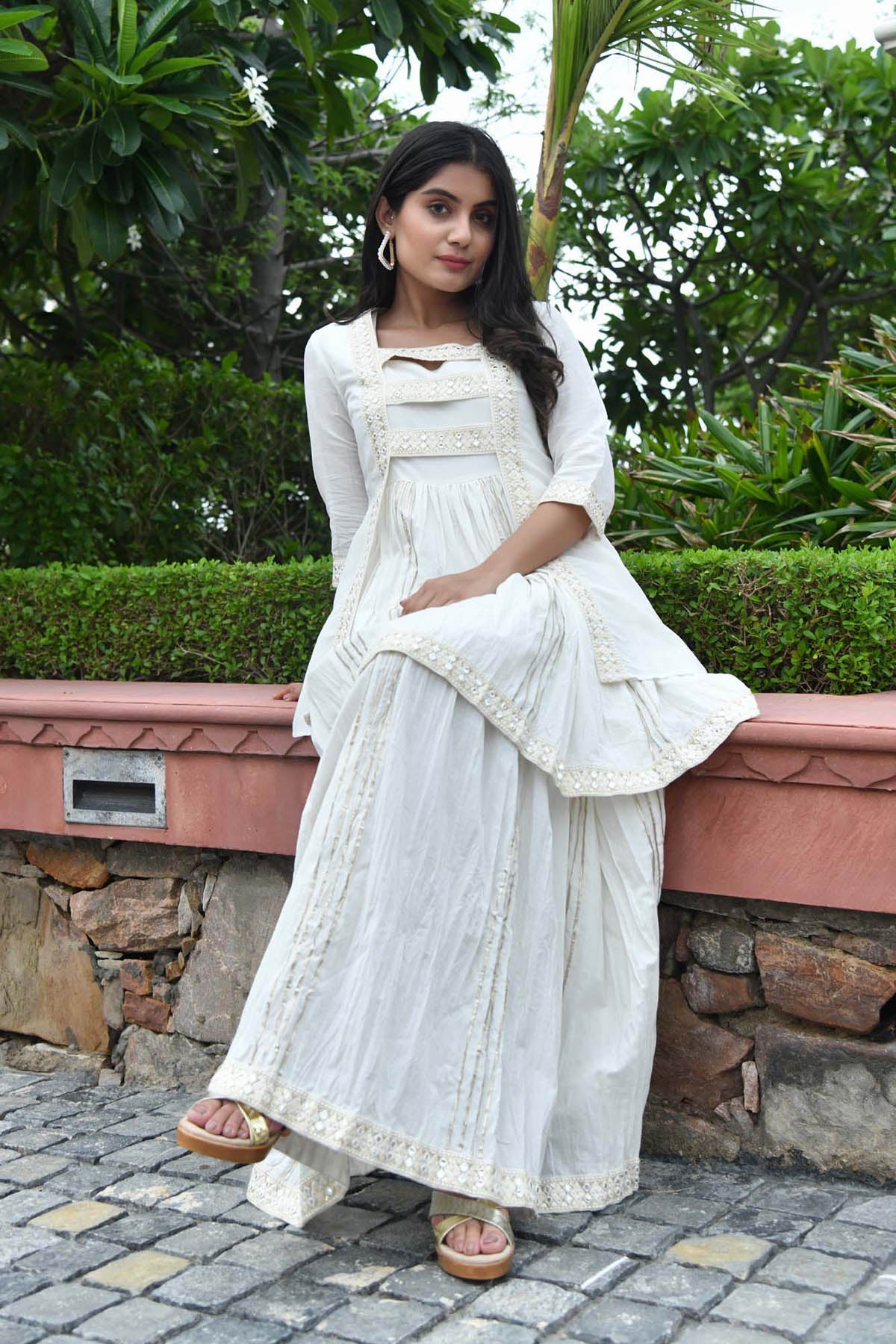 MULMUL BHAVRI ANARKALI KURTA-PANT & DUPATTA SET - MulticoloredEmbrace yourself in this gorgeous "MULMUL BHAVRI ANARKALI KURTA -PANT & DUPATTA SET" from our entrancing GOTA SPLENDOR collection. Intricate lace detailing on sleeves, neckline, bottom of kurta and pant Which enhances the beauty of our garment. This bright and bold shade makes you...