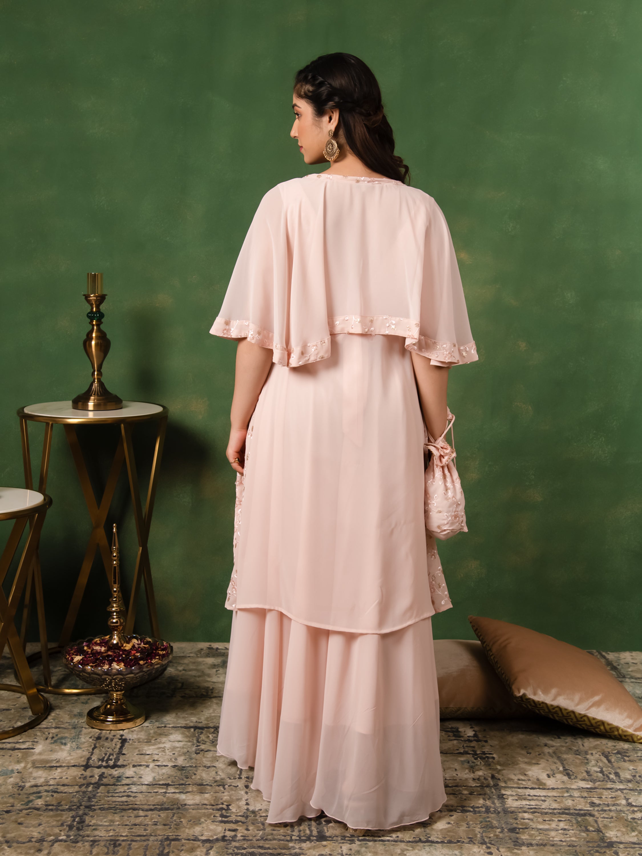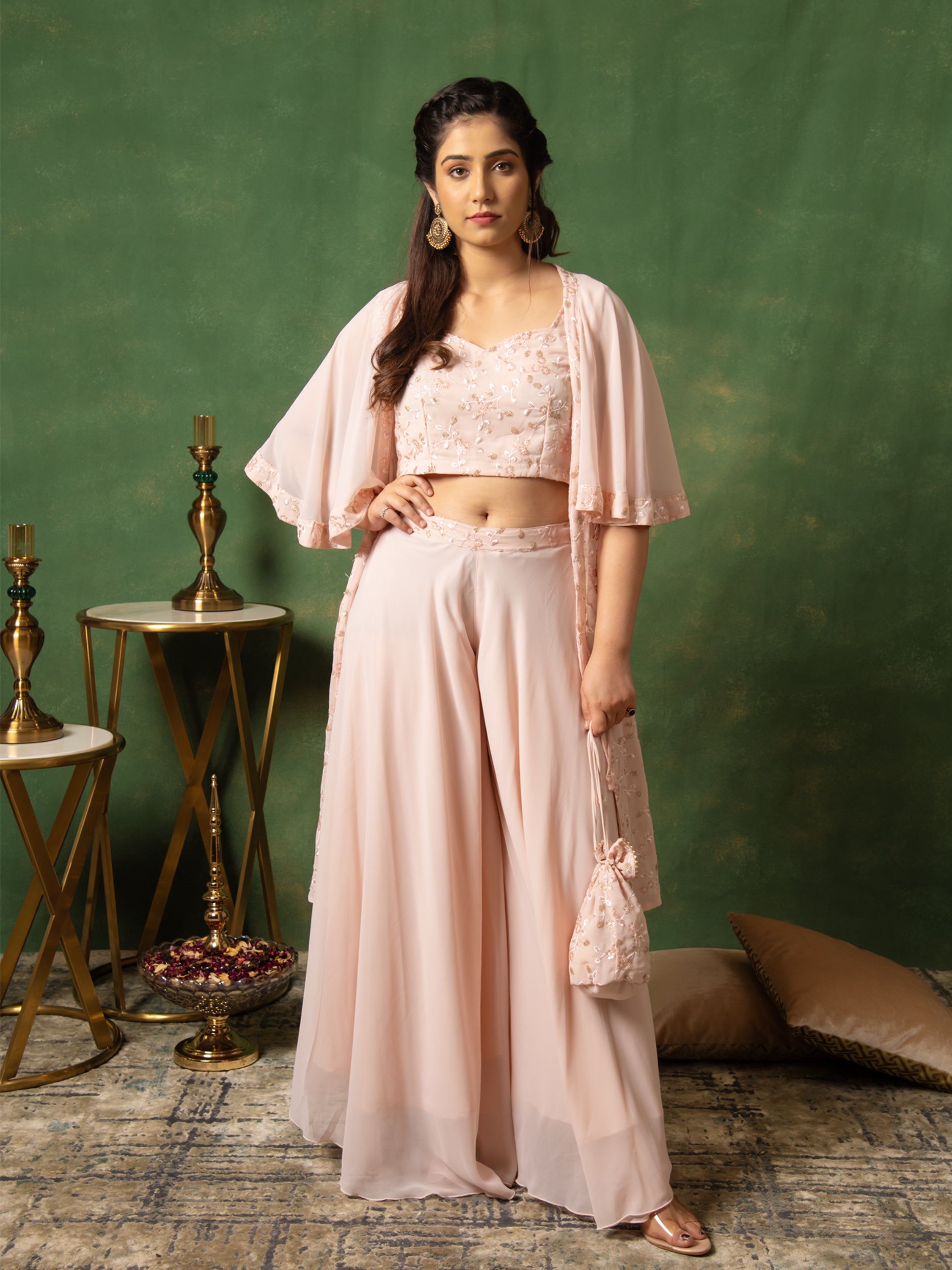 Flaunt your festive look in our Pink Georgette Sequin Embroidered Co-ord set.
