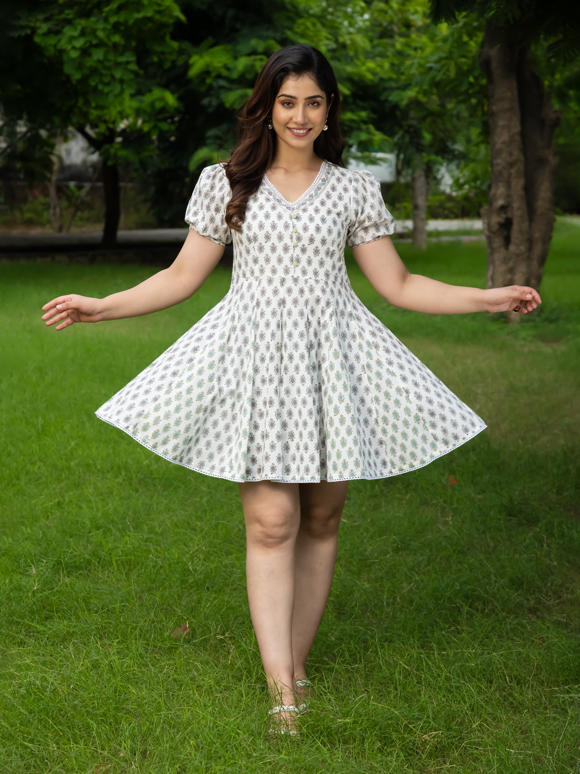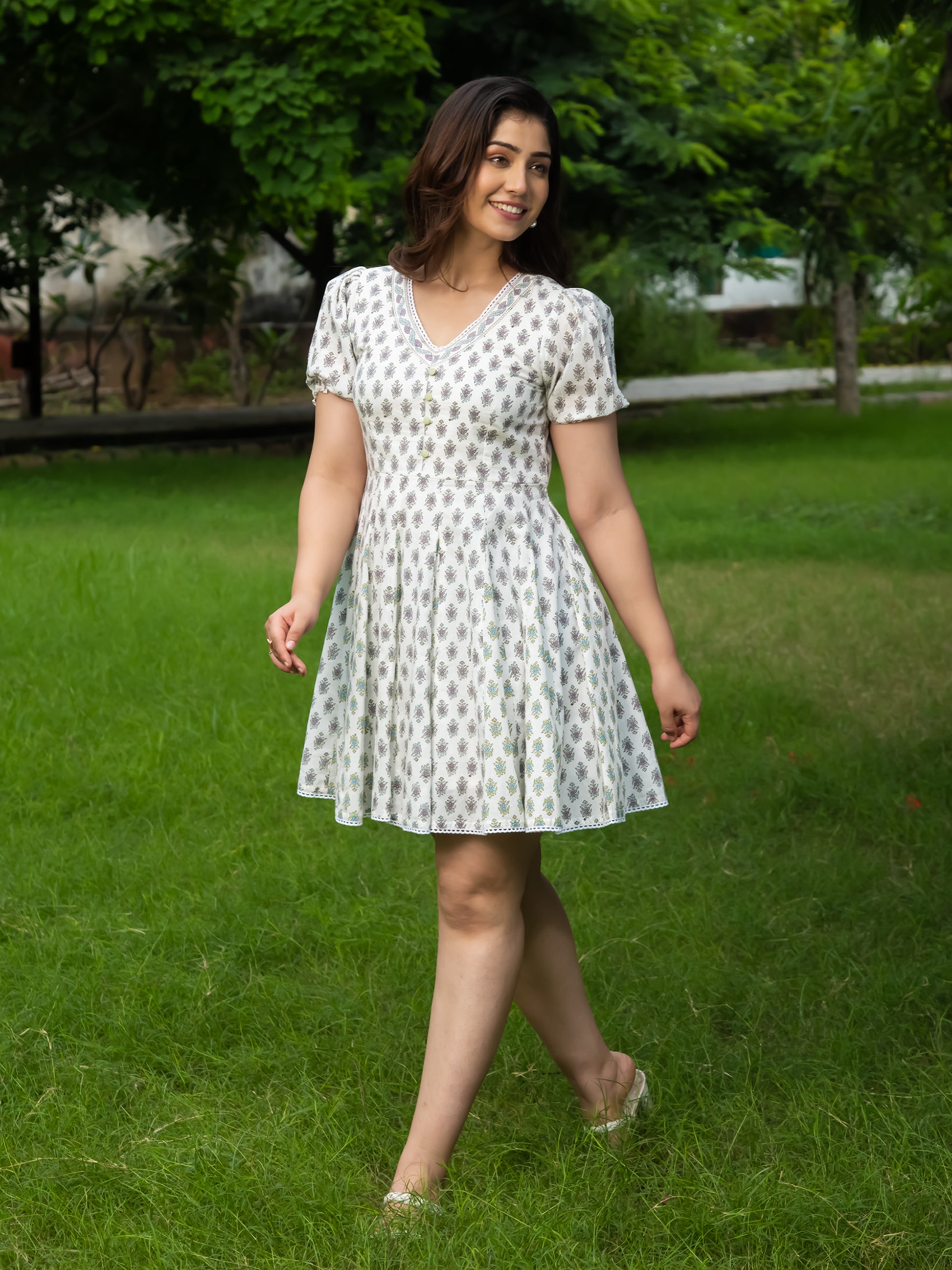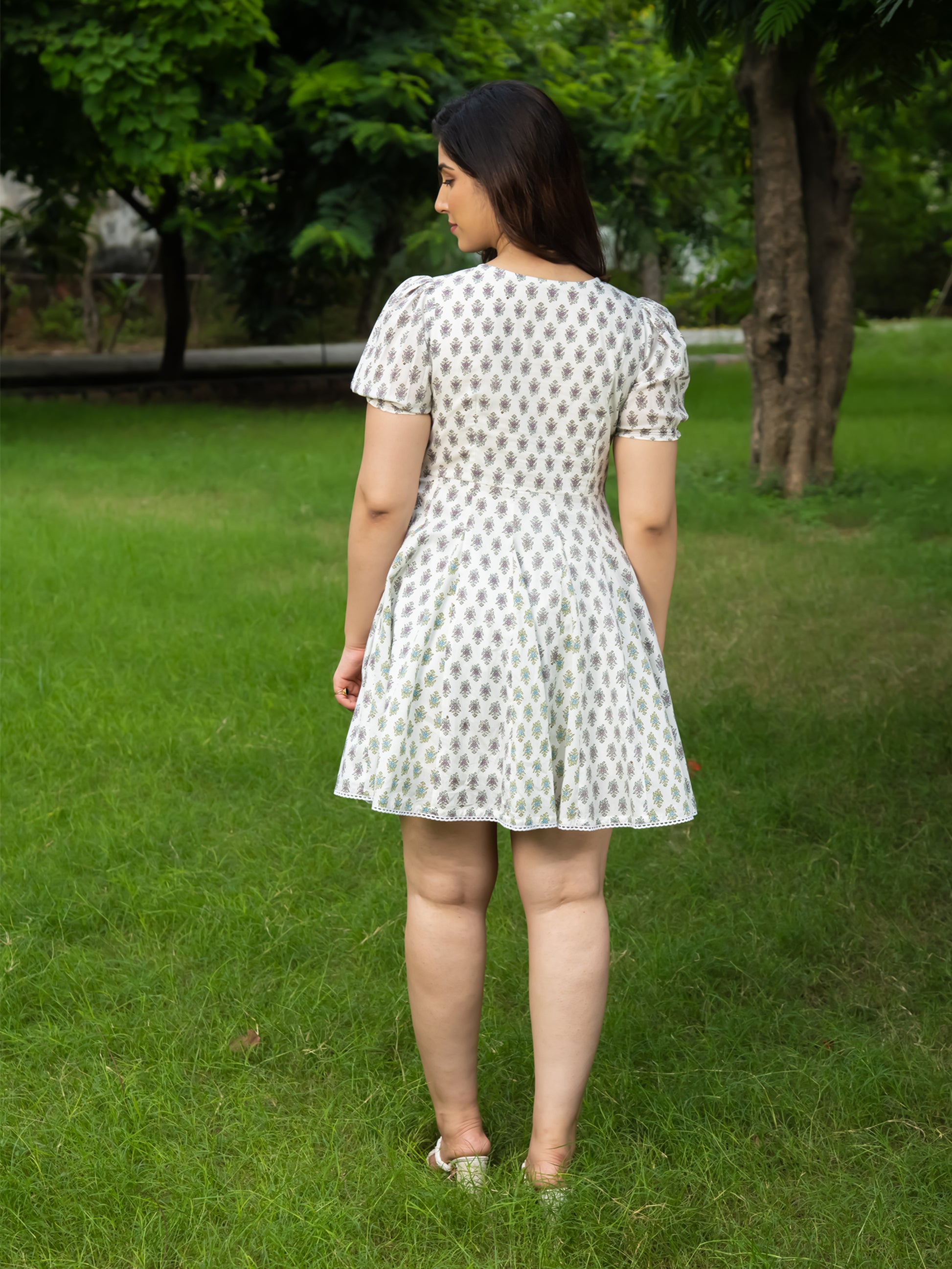 Introducing our stunning DEA BLOCK PRINTED FIT & FLARED MINI DRESS from the Sunshine Soiree collection. This dress is perfect for those sunny days and special occasions, exuding an air of elegance and femininity. Let the feminine colors and intricate details transport you to a blooming garden filled with joy.