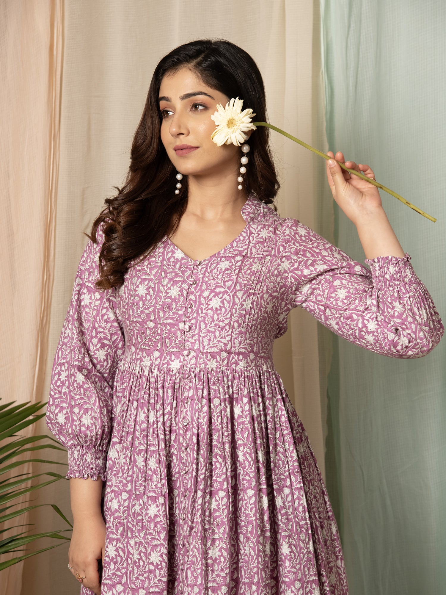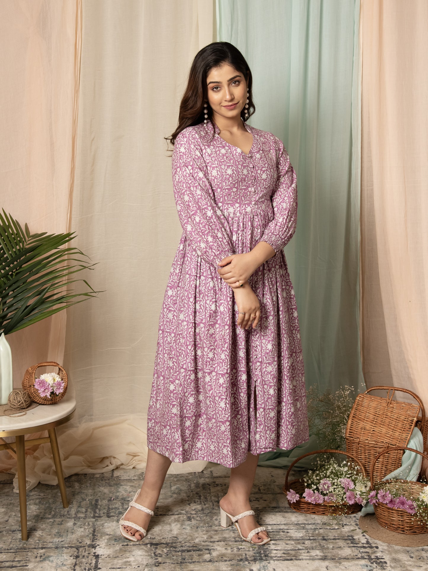 Whether you're attending a garden party, a romantic dinner, or a summer soiree, our TURVI FLORAL BLOCK PRINTED DRESS is the epitome of effortless style and grace.