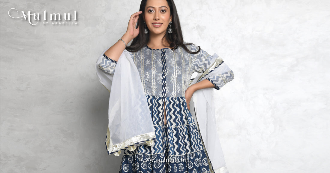Mulmul is delighted to bring you a range of exclusive, gorgeous and vibrant Bandhani and Gota Patti embroidered suit sets, that are sure to bring out the colours of your soul for the upcoming festivities. Dance through the revelries in our beautiful, embellished flared silhouettes, making your Dandiya night look a statement to remember.