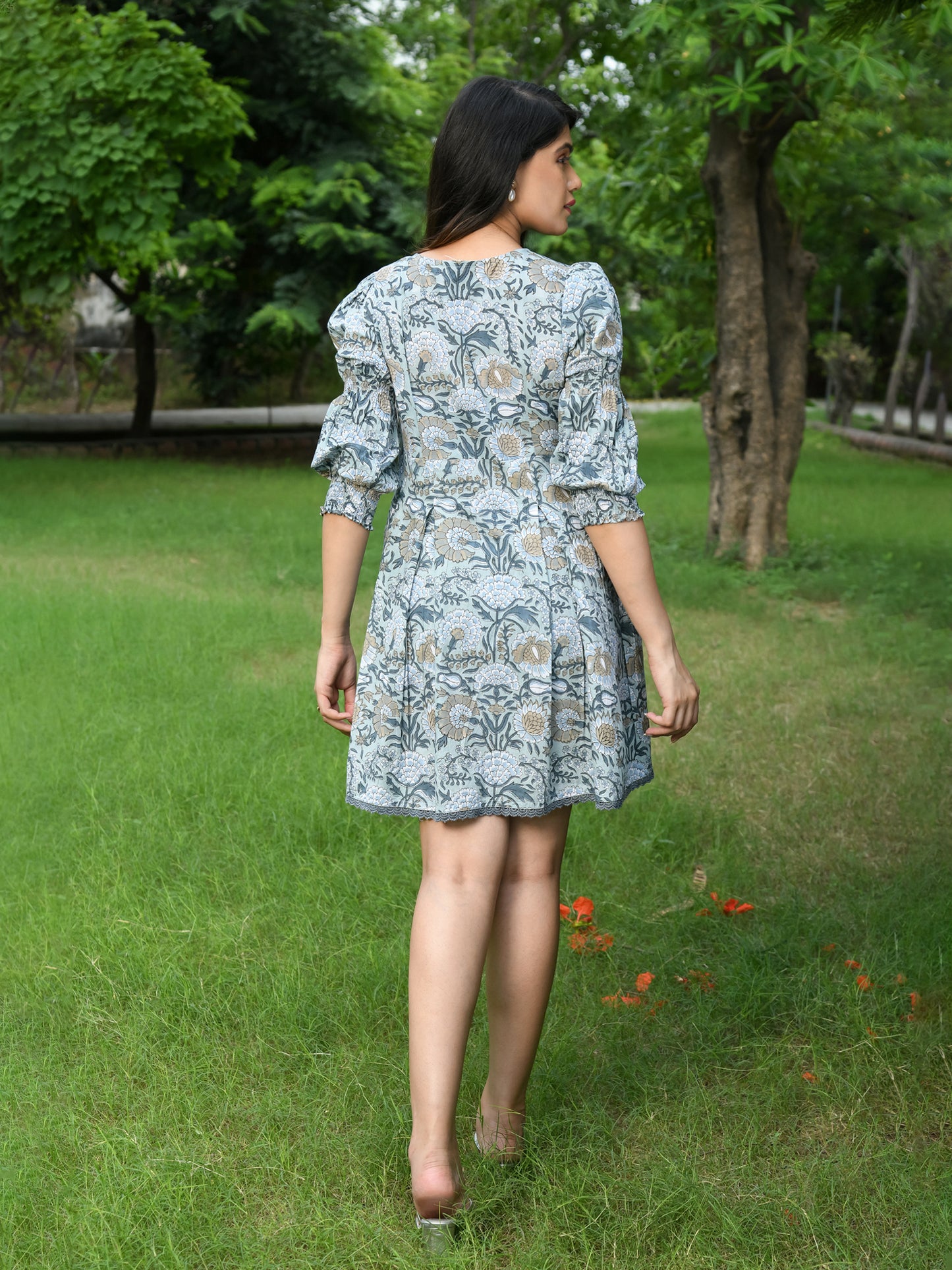 saleIntroducing our stunning NIRA FLORAL JAAL BLOCK PRINTED DRESS, a perfect choice for those who appreciate the beauty of handcrafted fashion. This short-length dress is designed to make you feel effortlessly elegant and radiant.