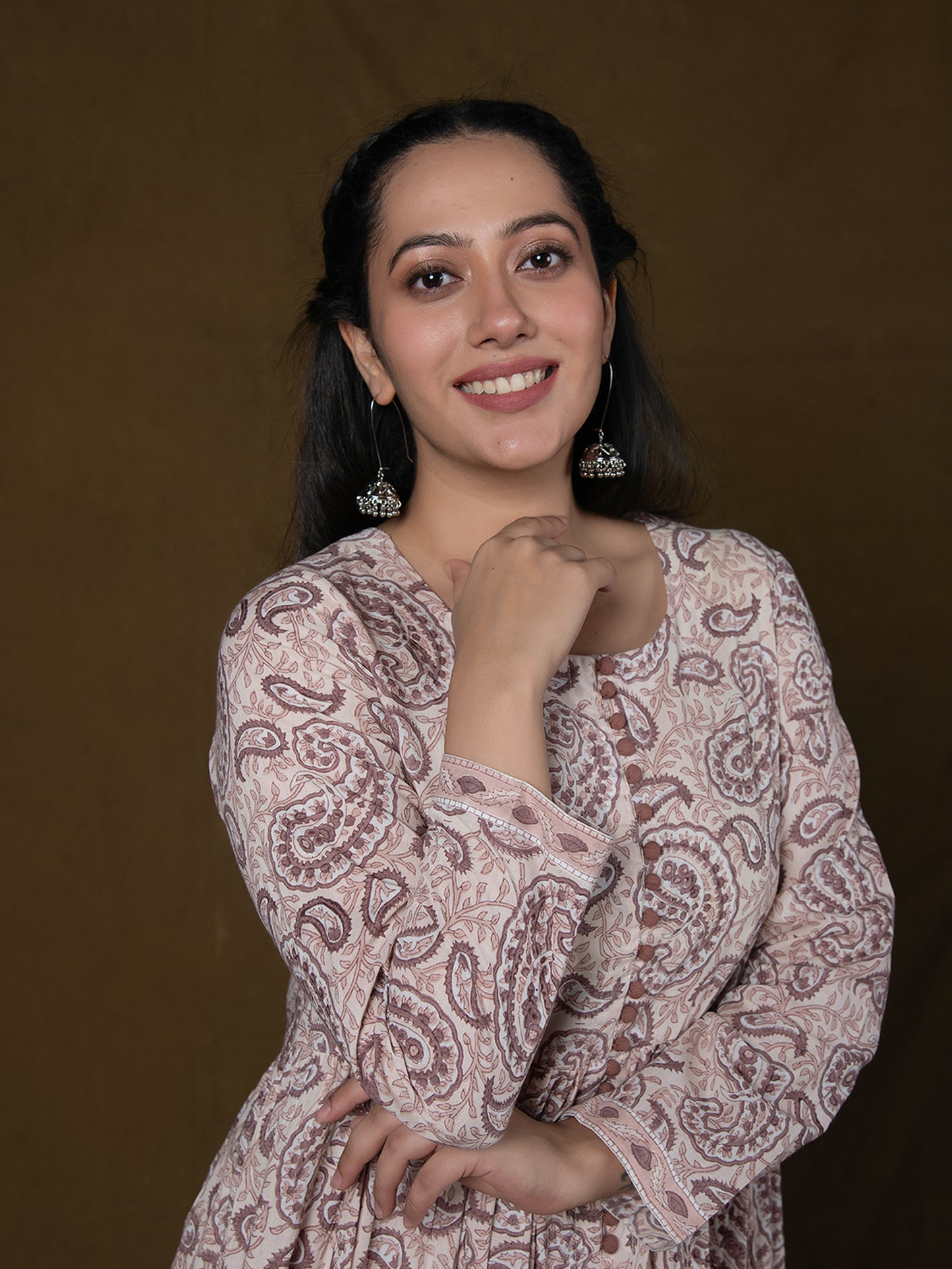 Introducing our 'NITYA BLOCK PRINTED KURTA & PANT SET'. This set is made in a delightful combination of comfort and style with a traditional touch. The kurta, made from lightweight and breathable cotton, is adorned with intricate block printed pattern. This set combines comfort and style with a touch of Indian heritage. It's perfect for casual occasions.